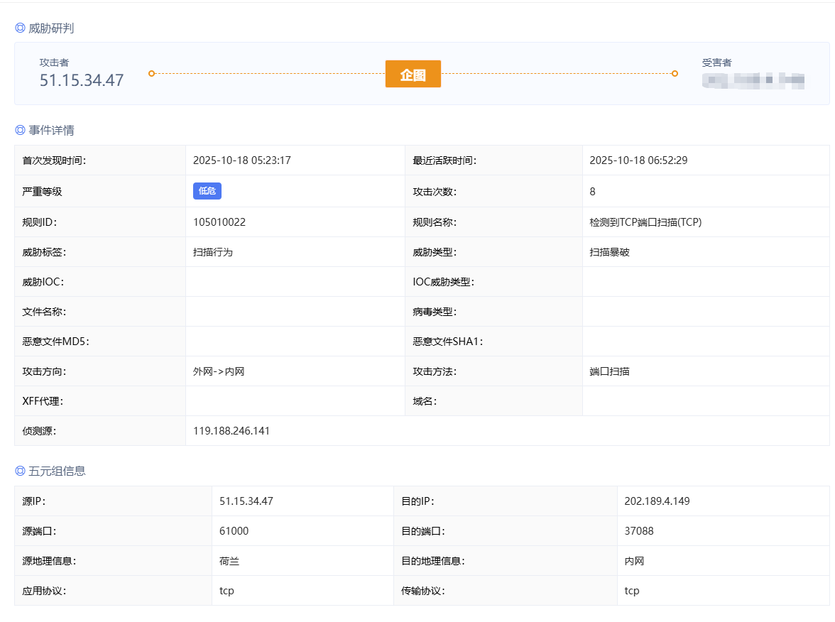 3.海绵科创官方通过调取机房异常流量防火墙数据,找到了疑似该组织的常用IP,并进行了记录,且已经在上层防火墙对这些IP进行了强制阻断。